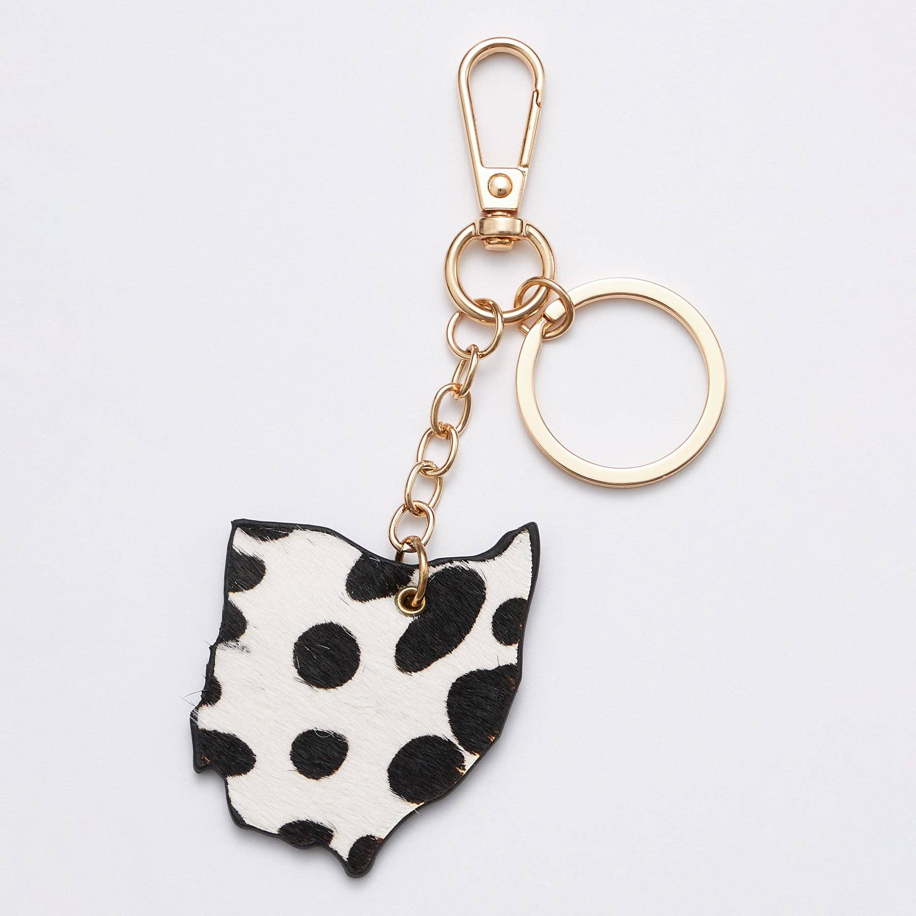 Genuine Leather Animal Print Ohio State Keychains Dimension - Approx. 1 3/4 inch X 1 3/4 inch Material - Genuine Calf Hair Leather