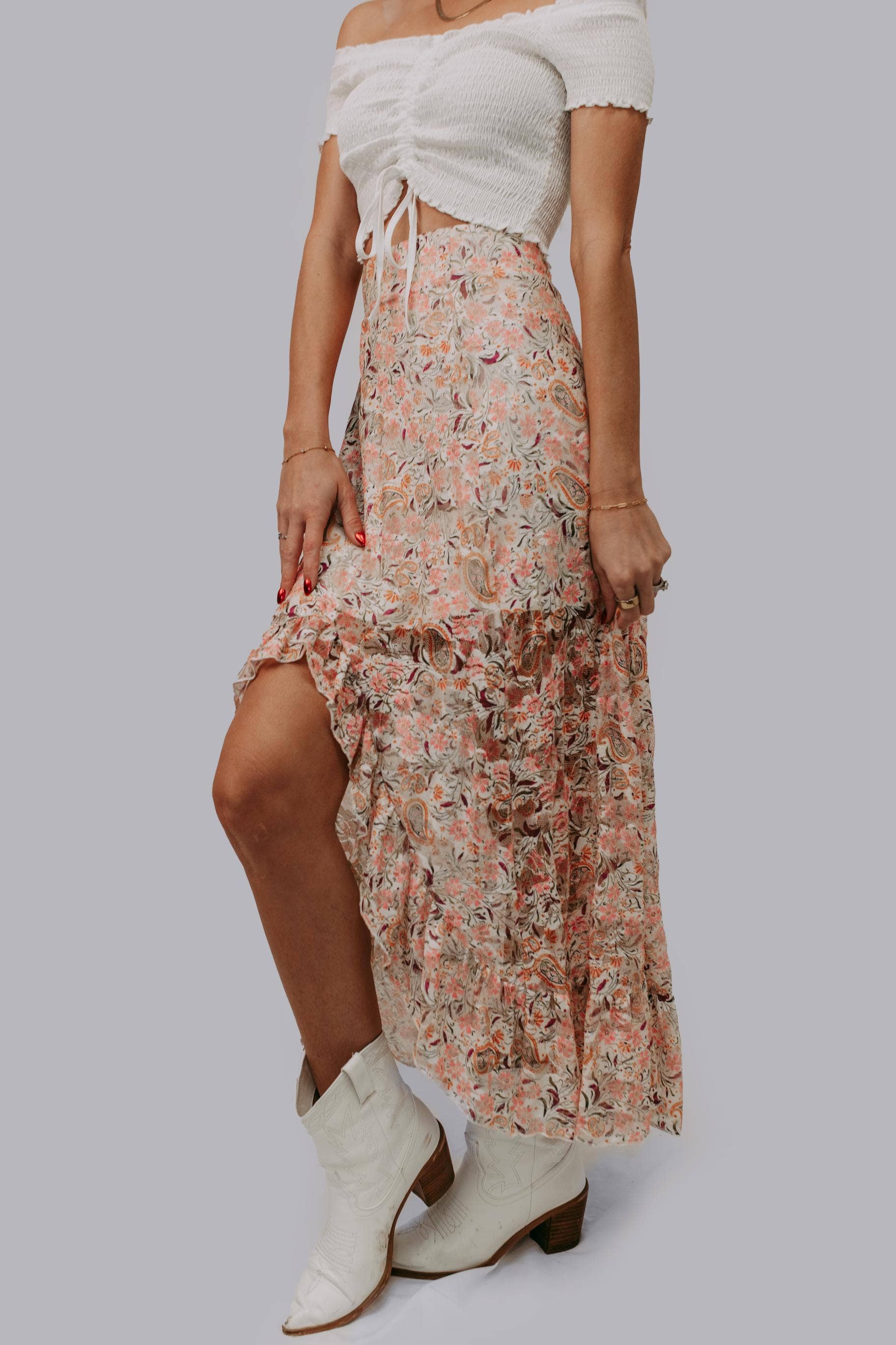 -Maxi Skirt -Floral -Ruffles -High Waisted -High Cut-lace