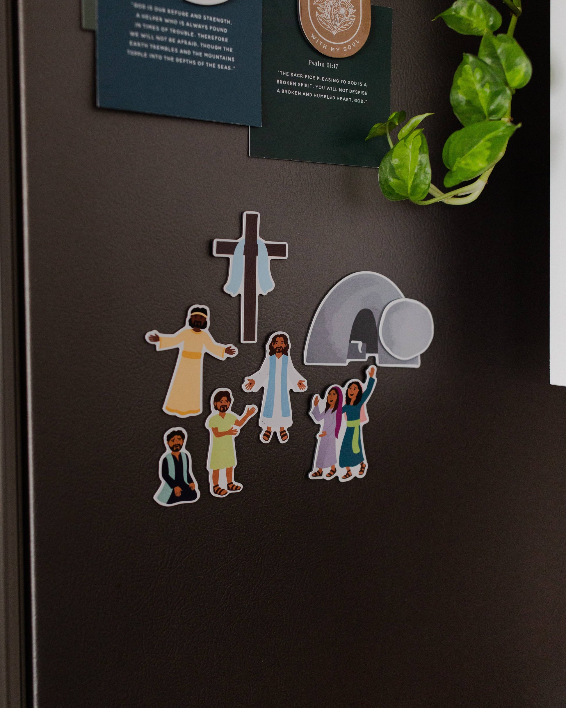 Experience the iconic Resurrection story with these charming magnets! This collection of 8 magnets showcases beloved figures from that faithful morning. A vinyl laminate ensures durability against water and sunlight, allowing these magnets to remain a cherished keepsake for years.